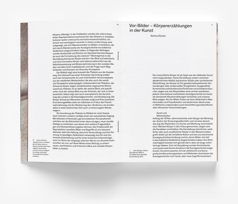 Körper werden in Kategorien eingereiht und in Narrative eingebunden, die sich immer an einer vermeintlichen Norm orientieren, einer Norm, die sich wiederum meist als System von Zugehörigkeit oder Ausschluss fassen lässt: Non-binäre, queere, kranke, beeinträchtigte, alte und Schwarze Körper sind markant unterrepräsentiert und geraten nur dann in den Blick, wenn ihre Darstellung durch die Botschaft motiviert ist. So sehr Typisierungen für die schnelle Kommunikation unabdingbar sind, so gefährlich sind sie auch. Machtverhältnisse und Normierungen in Bezug auf vergeschlechtlichte, rassifizierte und nicht-normative Körper werden permanent zementiert und legitimieren deren Marginalisierung und Diskriminierung.