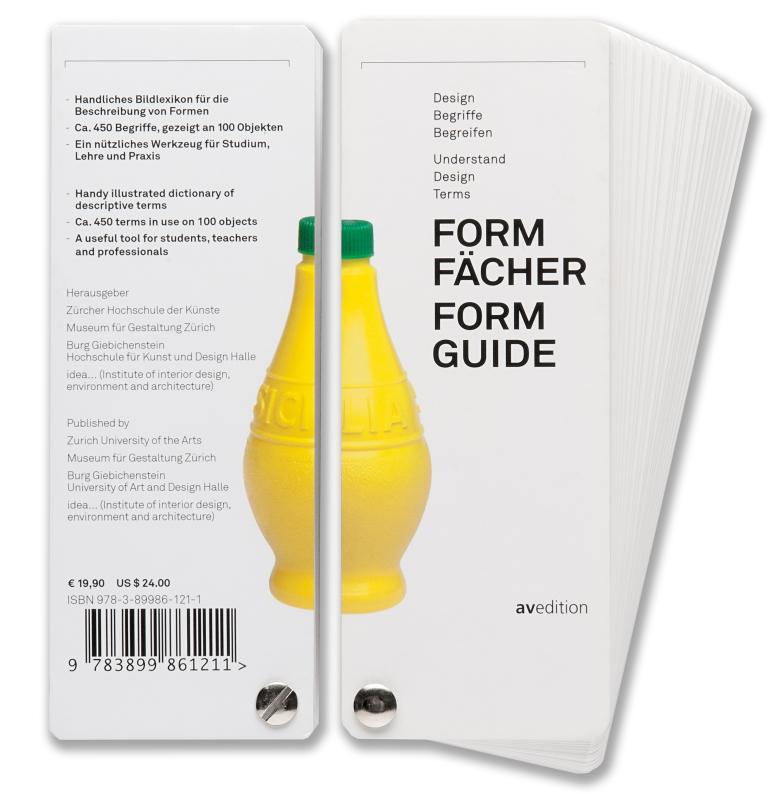 Die designerische Tätigkeit wird immer von Redeweisen begleitet, die entweder zu Machendes begründen oder Gemachtes reflektieren. Der Diskussion über Formen kommt dabei eine bedeutende Rolle zu. Dafür geeignete Begriffe zu erarbeiten, war die Herausforderung des binationalen Forschungsprojekts. Als Hilfsmittel zur Beschreibung von Design bündelt der Formfächer eine Auswahl solcher und anderer Begriffe und veranschaulicht sie anhand von 100 Objekten aus der Designsammlung des Museum für Gestaltung Zürich.