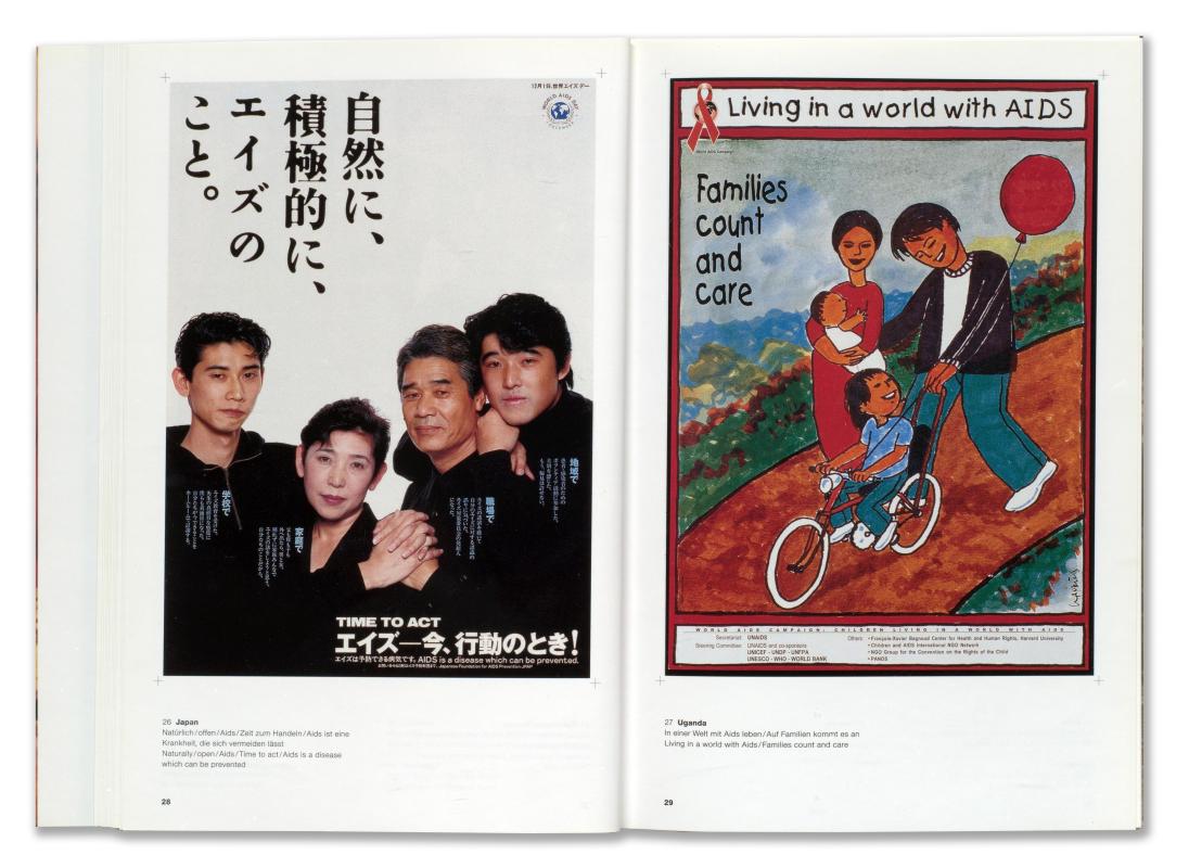 Seit die Aids-Epidemie um sich greift, kommt dem gesundheitspolitischen Auftrag der Aufklärung eine grosse Bedeutung zu. In vielen Ländern hat das Plakat als Informationsmedium erst durch Aids Verbreitung gefunden, sodass zunächst visuelle Formeln zu einer Thematik entwickelt werden mussten, die mit vielen Tabus behaftet ist. Eine Übersicht von Aids-Präventionsplakaten aus Asien, dem Pazifikraum und Afrika zeigt auf, dass die zwingend erforderliche Wirksamkeit der Plakate nach einer Verankerung in lokalen Traditionen verlangt. Aids hat so das Plakat wieder auf seine fundamentale Bedeutung als Massenkommunikationsmittel zurückgeführt. «Bei einer Krankheit, die mit Sexualität zu tun hat, stellt sich immer wieder die Frage, was tatsächlich gezeigt werden kann, und die Antworten auf diese Frage lassen den Betrachter oft ins Grübeln geraten. Drastische Offenheit und vage Andeutungen konkurrieren um die Gunst des Publikums. Wer versucht, mit unzweideutigen visuellen Zeichen zu arbeiten, stolpert immer über das Sexuelle.» (Nigel Barley)