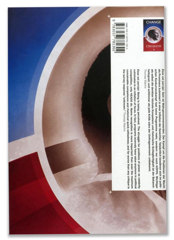 Politikerinnen und Politiker sind in unserer Gesellschaft allgegenwärtig. Wie sie sich präsentieren, ist sowohl abhängig vom historischen Kontext als auch von der Regierungsform und dem kulturellen Umfeld. Wesentliche Bestandteile politischer Arbeit sind Imagebildung, Kampagnen, Wahlkämpfe und Eigenrepräsentation, aber auch die Demontage des Gegners. Dabei ist der Austausch zwischen Politikern und Bevölkerung von einem komplexen Gefälle geprägt. Breite Wählerschichten sollen für ein Programm gewonnen werden, ein wirklicher Austausch mit dem Individuum findet hingegen nur sporadisch statt. Die Publikation beleuchtet geschichtliche Wurzeln, epochemachende Wahlkämpfe, wiederkehrende Muster der politischen Öffentlichkeitsarbeit und ikonografisch prägende Figuren wie Lenin, Che Guevara, Arnold Schwarzenegger oder Julia Timoschenko.