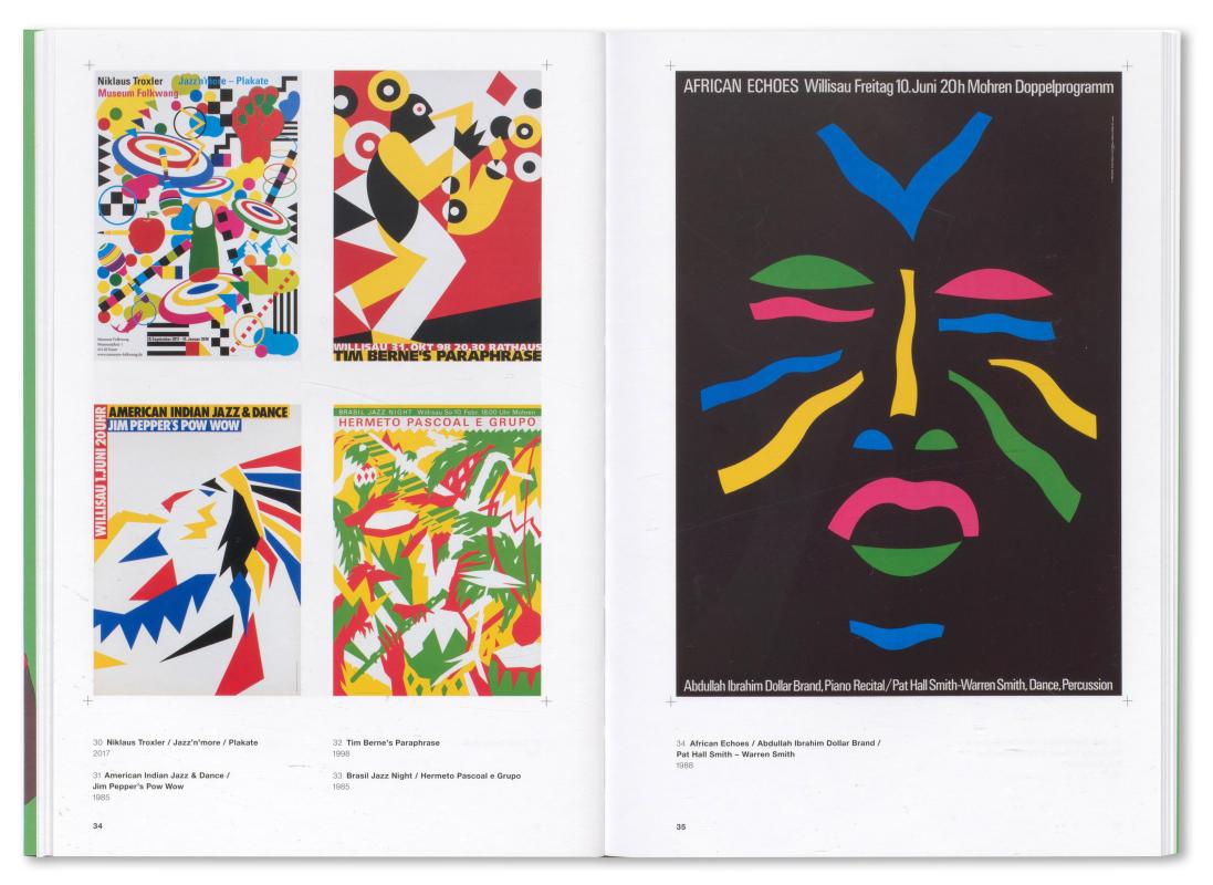 Als einer der bedeutendsten Plakatgestalter der Gegenwart widmet sich der Schweizer Grafiker Niklaus Troxler (geb. 1947) vor allem dem Jazzplakat. 1966 organisierte Troxler das erste Jazzkonzert in seiner Heimatstadt Willisau im Kanton Luzern, 1975 gründete er ebendort ein Jazzfestival, das seither jährlich etablierte als auch innovative Namen des Schweizer und internationalen Jazz auf die Bühne bringt. Sowohl für das Festival als auch für die Einzelkonzerte entwarf Troxler unzählige Plakate und erfand sich dabei immer wieder neu. Orientieren sich seine frühen Jazzplakate noch stark an einer illustrativen Verständlichkeit, so emanzipiert er sich bald von jeder Narration. Sein virtuoses Spiel in der Fläche übersetzt den Charakter der experimentellen Musik und nimmt deren Improvisationsgesten auf. Troxlers Plakate sind synästhetische Erfahrungen und machen Musik physisch erfahrbar. Sein besonderes Interesse gilt dabei der Schrift, die er stets auf neue Weise und mit anderen Mitteln entwirft und dabei die Grenzen der Lesbarkeit auslotet.