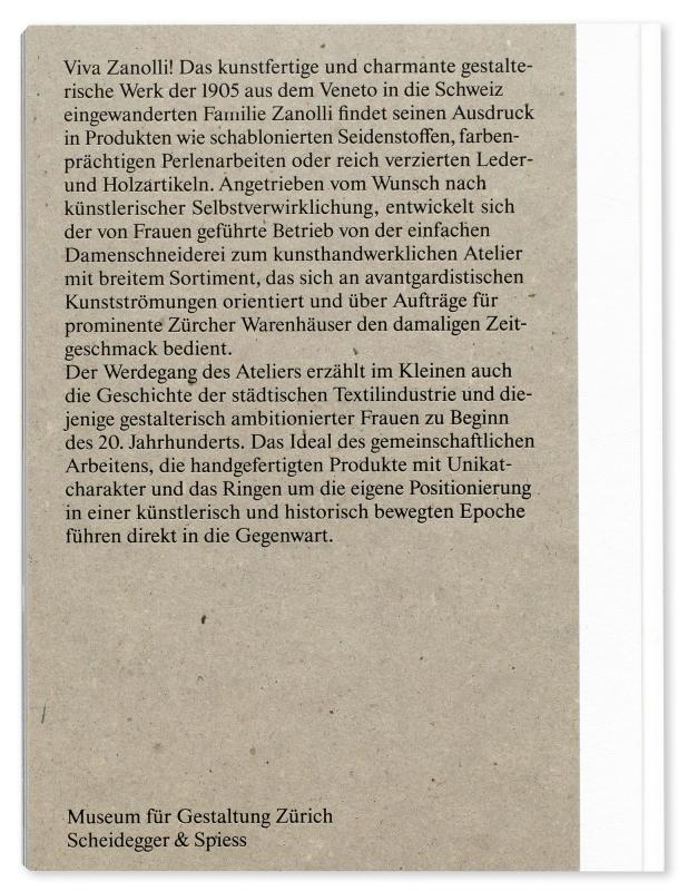 Viva Zanolli! Das kunstfertige und charmante gestalterische Werk der 1905 aus dem Veneto in die Schweiz eingewanderten Familie Zanolli findet seinen Ausdruck in Produkten wie schablonierten Seidenstoffen, farbenprächtigen Perlenarbeiten oder reich verzierten Leder und Holzartikeln. Angetrieben vom Wunsch nach künstlerischer Selbstverwirklichung, entwickelt sich der von Frauen geführte Betrieb von der einfachen Damenschneiderei zum kunsthandwerklichen Atelier mit breitem Sortiment, das sich an avantgardistischen Kunstströmungen orientiert und über Aufträge für prominente Zürcher Warenhäuser den damaligen Zeitgeschmack bedient.